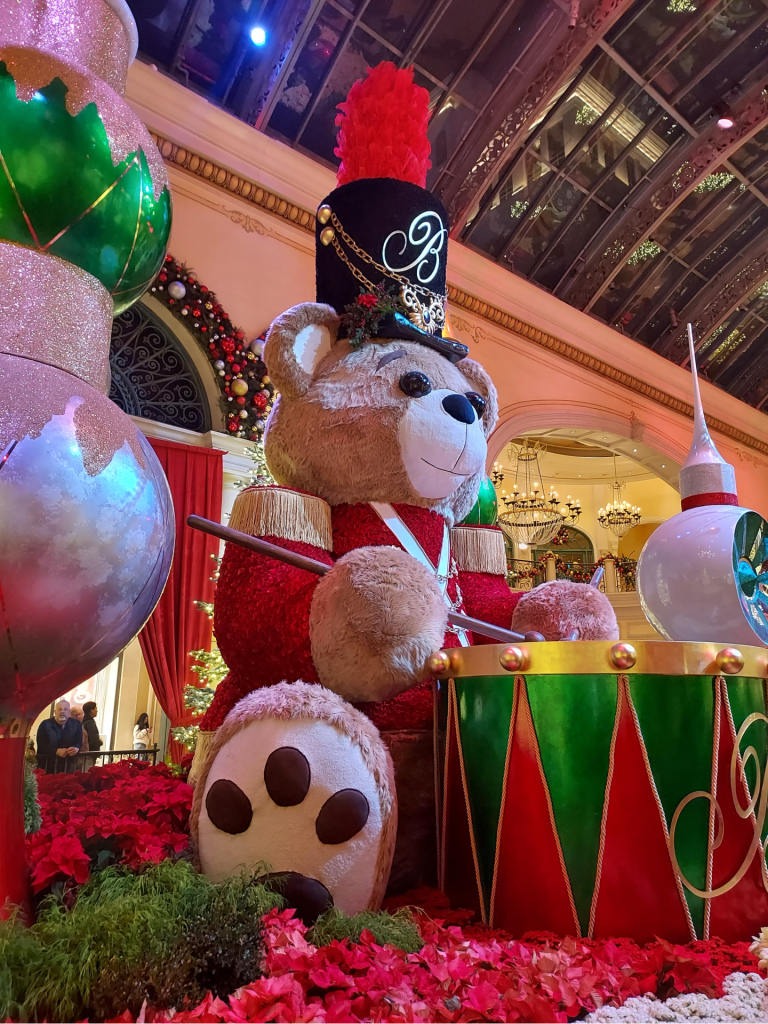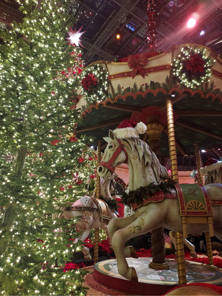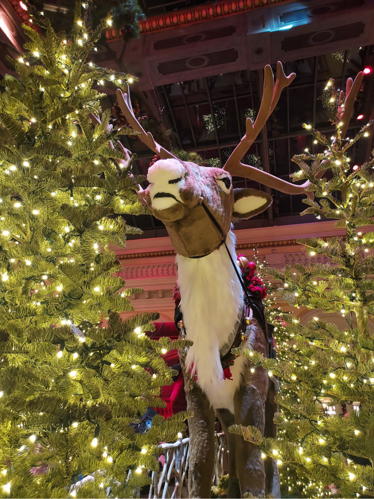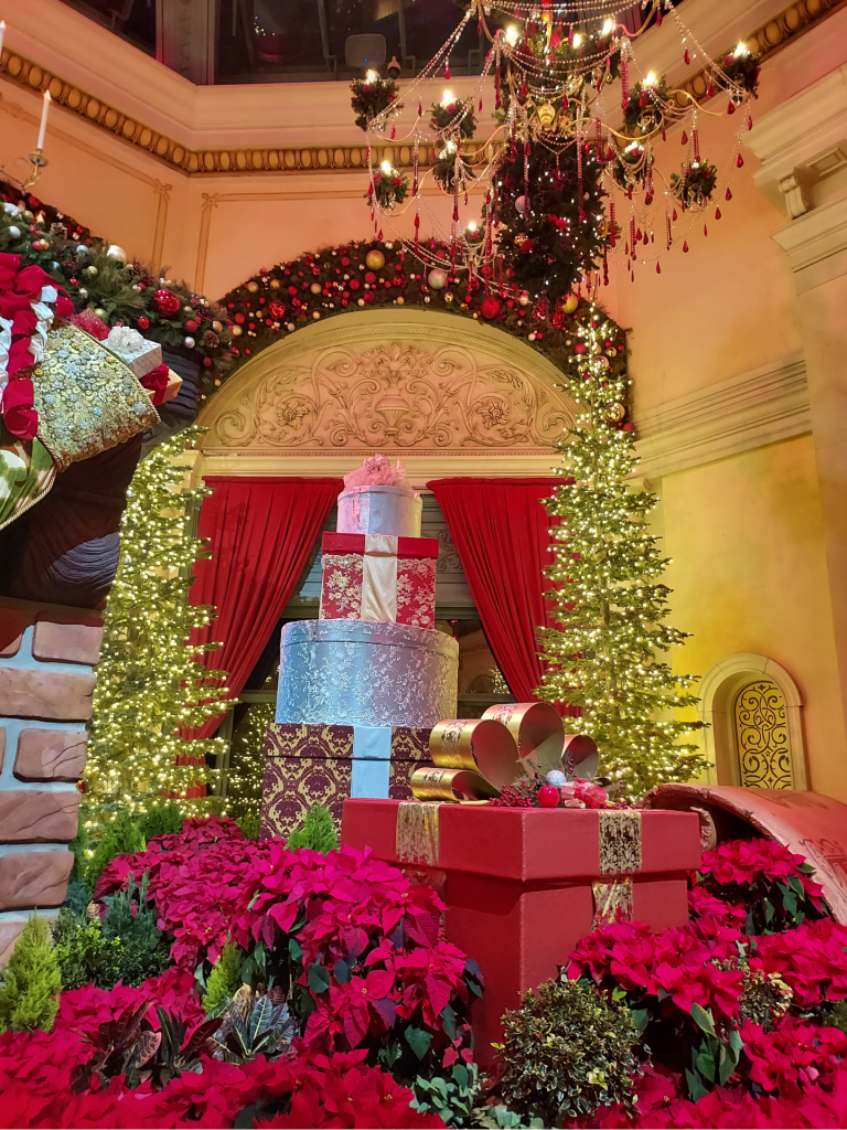 On New Year’s Eve, after putting up an away message, closing my laptop for the last time in 2024, and doing some early afternoon food shopping since we’d had a quiet night in together planned, Troy and I got dressed to the nines to pop by the Vegas Strip for just a little while before it started getting too crowded – grabbing a couple of cocktails at The Chandelier bar in our beloved Cosmopolitan and checking out the final hours of the holiday display within the Conservatory at the Bellagio. It was absolutely breathtaking (it always is!) and we spent a good amount of time snapping photos and posing for selfies.