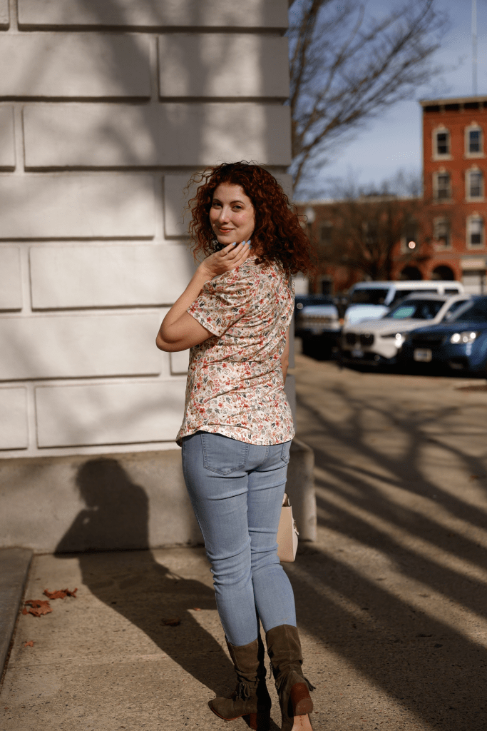 While I’ll have the full write-up of the places we visited and the food we ate (which was incredible!) here on the blog a little later on this week, along with another couple of cool spots I had visited over the weekend – I wanted to briefly talk about my outfit I wore for the afternoon – specifically this floral, short & puffy-sleeved top that I got a bunch of compliments on while we walked around downtown Keene while waiting for the restaurant we’d planned to visit to open for the afternoon/evening.