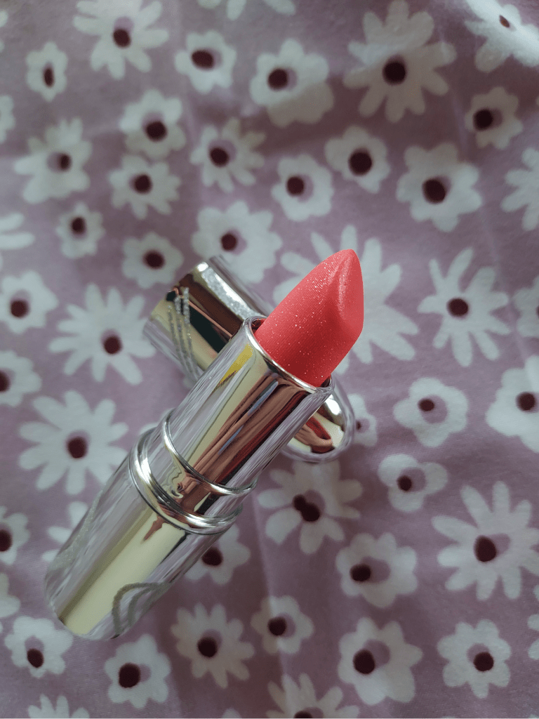 The finish is creamy and hydrating, and the sparkles are definitely noticeable at certain angles and particularly in the sunlight, so I’ve been having a lot of fun wearing this one throughout the season when I’m spending time outdoors.