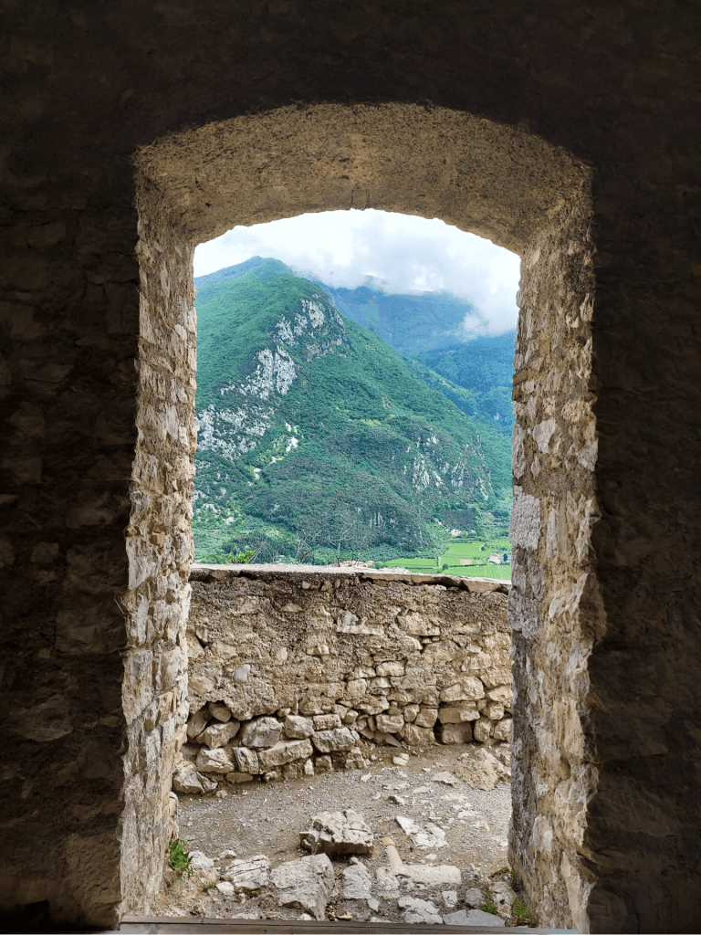One place we hiked to during the early days of our trip, and something I’ll happily share for anyone who wants to visit – was a trek to the cliffside remnants of a 12th century castle overlooking the town of Arco. Seeing these towers, arches, staircases and preserved murals/art up close and in person was incredible – a once in a lifetime experience that I’m so grateful I got to have on what ended up being a beautiful, sunny day (the weather here has been a little unpredictable – which I may have brought with me from Massachusetts!)