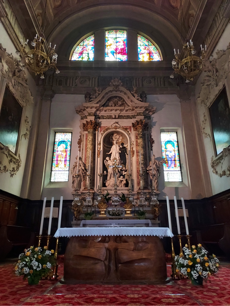 And once back in town, through the historic part of the village and finally at the center of Arco, we also got to visit one of Italy’s many beautiful churches/cathedrals – which have been especially lively during our stay since the new Pope was announced not too long after we’d arrived! It’s been very exciting!