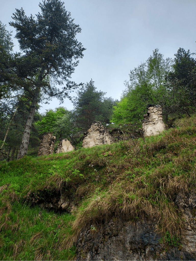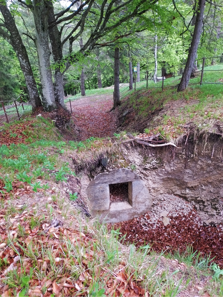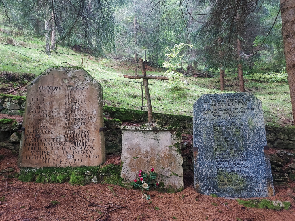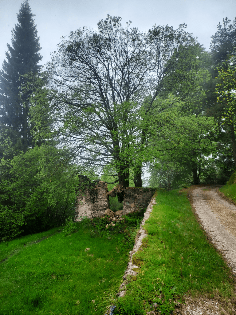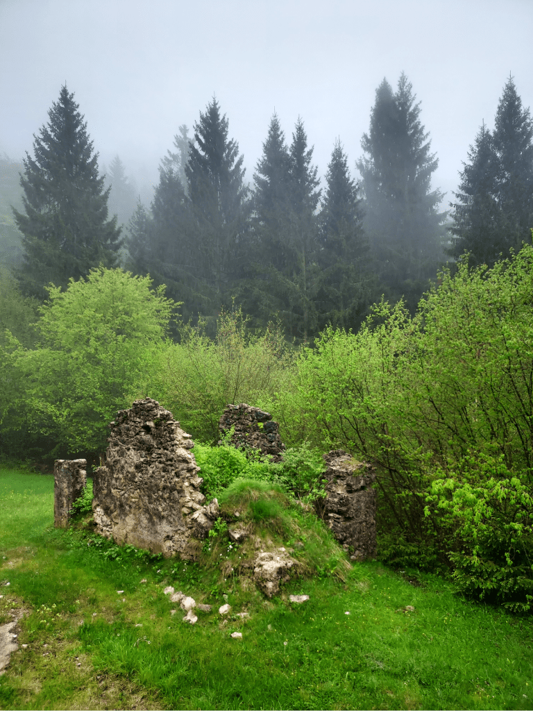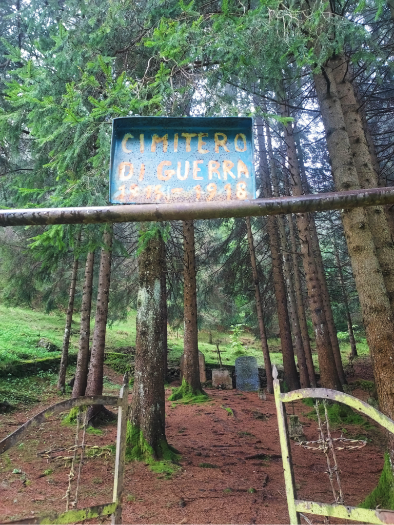 A few days into our trip, on one of the rainier mornings we’d experienced since we’d arrived, and after a failed attempt at my completing a Via Ferrata climb through a gorge (I was terrified, and we had to turn back), Troy and I traveled by both car and on foot to what was left of a former WWI base atop a mountain – including the remains of a hospital, carved out outposts, a military cemetery, and a battalion where cannons had been strategically placed to defend against encroaching enemy lines – some of which still had graffiti from the former soldiers carved into the stone! Learning that some of Troy’s family had been stationed there and assigned to protect the region was fascinating – especially when seeing how difficult the terrain was to navigate – even now.