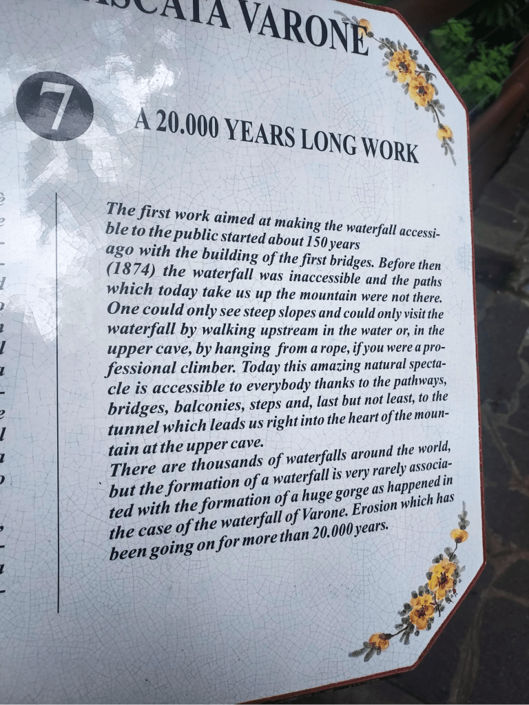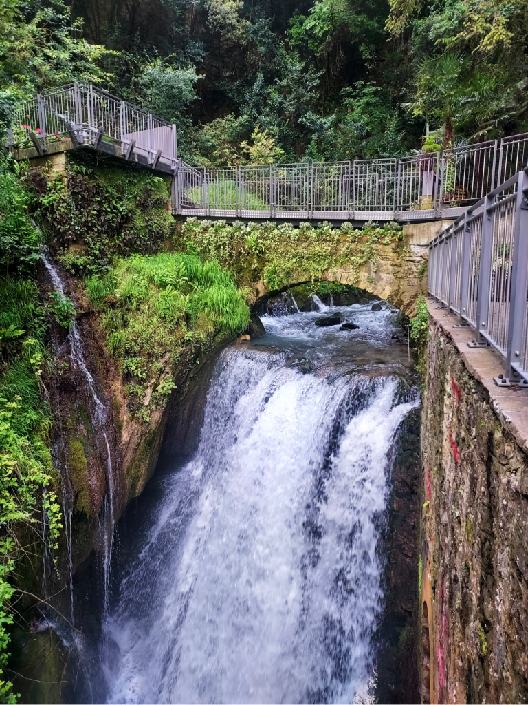 The skies had cleared by the afternoon that day, and after making our way back down the mountain, Troy brought me to Cascate del Varone to get just a little more wet. This beautifully curated park and botanical garden/trail also boasts two perfectly backlit tunnels/caves that lead into both the top and bottom of one of the most powerful and stunning waterfalls I’ve ever seen in my life. I was absolutely floored – and suddenly realized why Troy had bought a poncho for me when purchasing our entry tickets. The wind and the water within the tunnels were so intense – but I had the time of my life! I kept going back in to take another look!