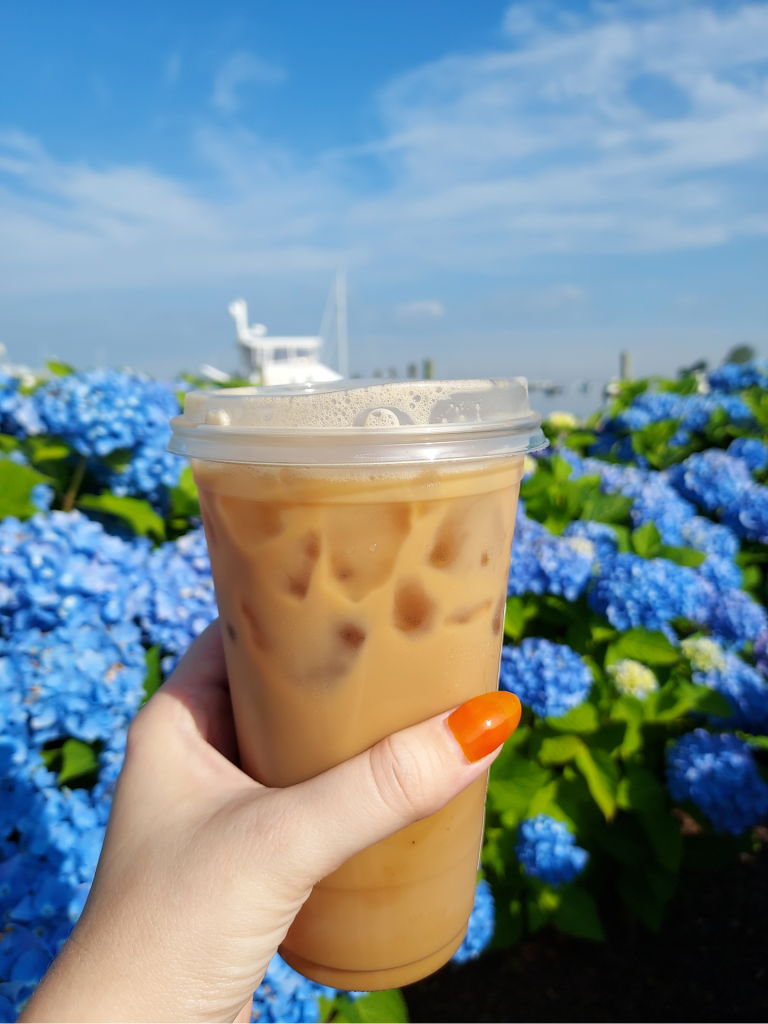 But there were plenty of other stops along the way this month that I didn’t have a chance to dedicate specific posts to here on ‘Coffee & Chiffon‘ – like celebrating the 50th Anniversary of ‘Jaws’ with an epic rewatch with friends, trying the famous “Fluffy Seagull” latte at Lighthouse Keeper’s Pantry in Yarmouth Port, catching Hozier perform at Fenway Park during our recent, record-setting heatwave (and within a thankfully air-conditioned VIP box where I met a bunch of lovely friends/family of the band and crew!) and most recently savoring the sun rise over the hydrangeas and enjoying an iced coffee at Watch Hill Beach in Rhode Island.