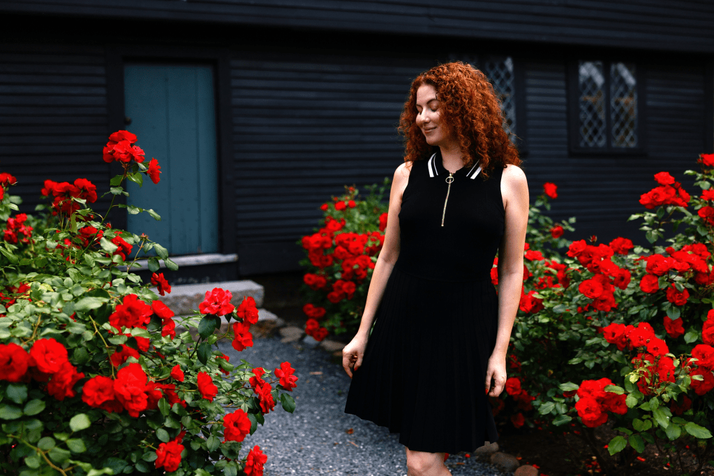 This was my ensemble of choice last month when Dan and I had traveled to Salem to celebrate Summer-Ween. Despite the heat and humidity that day, I stayed cool and dry in this fabric (even if my curls weren’t as cooperative), and was able to sit down for dinner, participate in a late night ghost tour, and do some window shopping without having to fan myself too much.
