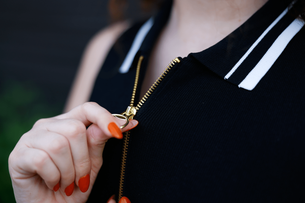 And as fun as the zipper in the front can be when it comes to being daring, I usually keep it zipped up to the top most of the time. I personally think it looks better that way – although I’m sure my boyfriend Troy would disagree!