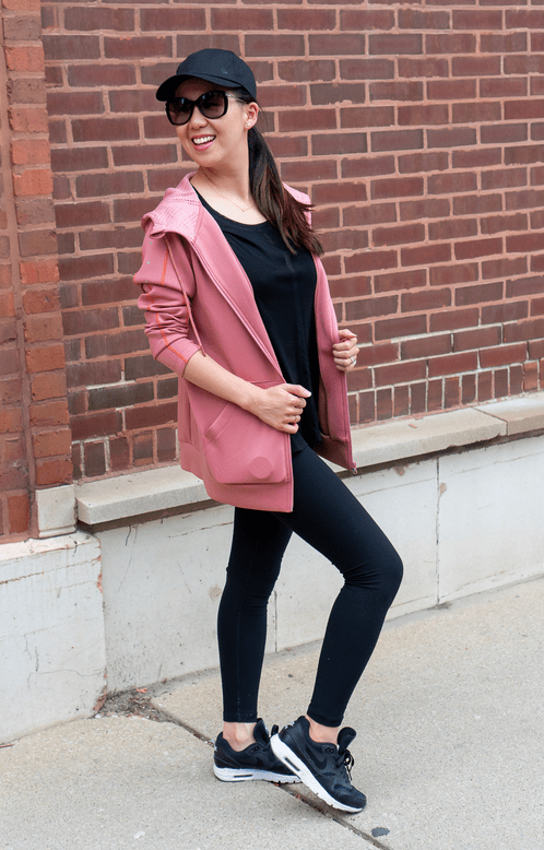 Think clean lines and raised materials. A neutral-toned hoodie with black or navy leggings delivers comfort without looking sloppy. Add gold hoops or a sleek crossbody to upgrade.
