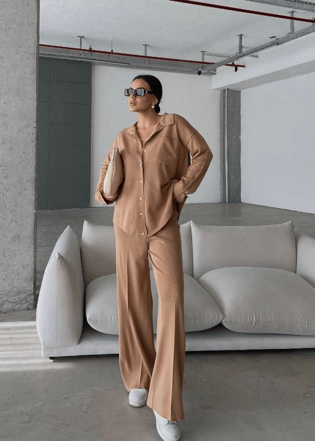 Comfort meets quiet polish in this pairing. Add a crossbody bag and slip-ons for long hours on the go. Simple, unfussy, and always photo-ready.