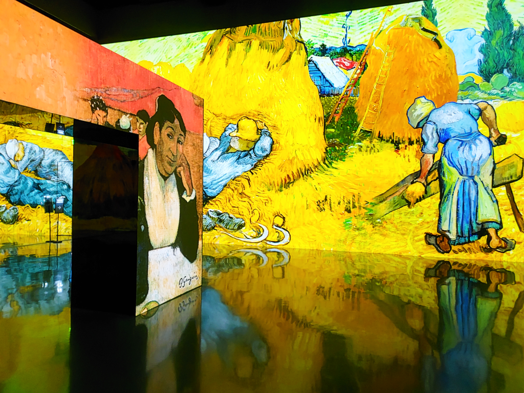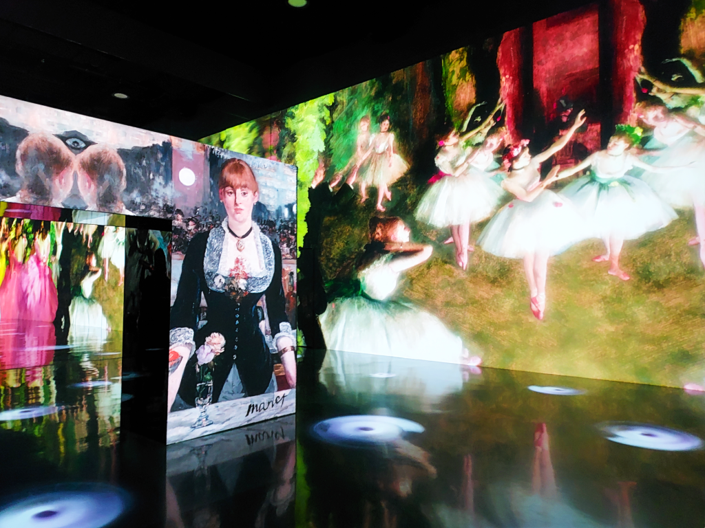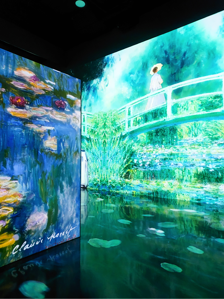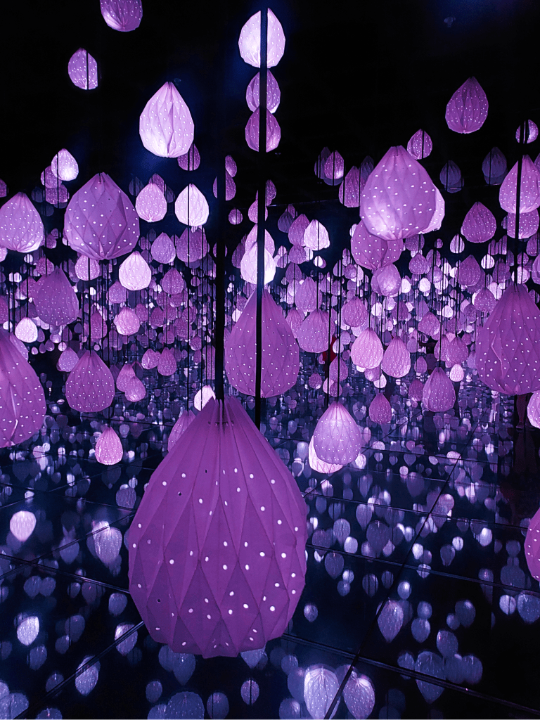 The first, Arte Museum, is an immersive gallery that brilliantly uses both large and small spaces, timed music/sounds, and digital imaging along with coordinated lights and mirrors to create an awe-inspiring immersive experience. We spent hours in there just marveling at everything as we explored from room to room, hallway to hallway. My favorite places to just sit and stare were the paper lantern room and a wrap-around Van Gogh tribute – but I also adored the “Live Sketchbook” room, where you could color pictures of different animals, scan them, and then watch them come to life and roam the walls around you!