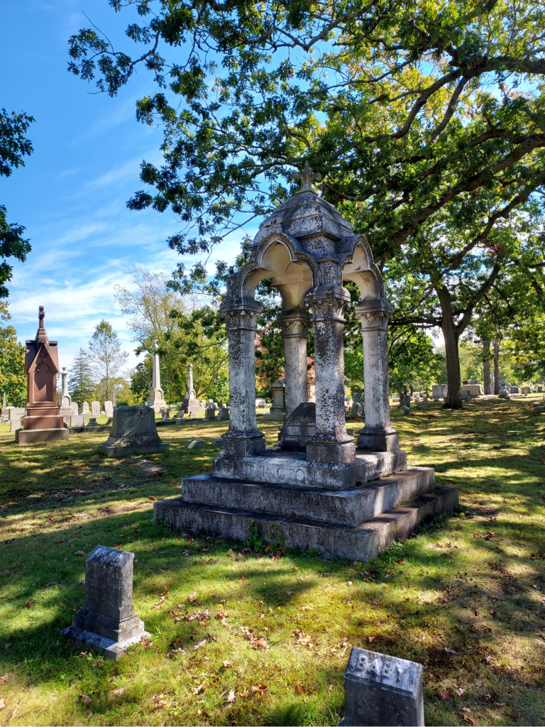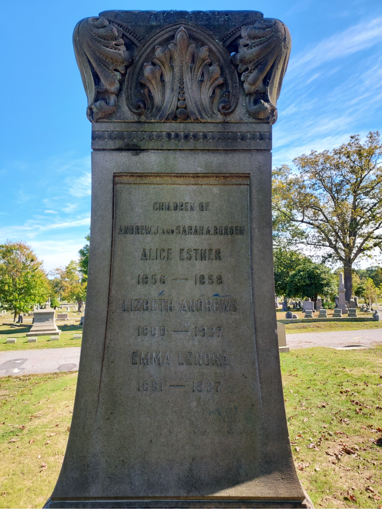After the tour, I headed over to the nearby beautiful and sprawling Oak Grove Cemetery to pay my respects to the Bordens – all of them – at their family plot where they are all buried side-by-side – with Lizzie buried next to her parents despite all the scandal, before stopping by to see Lizzie’s final home, Maplecroft Manor, where she spent her final years of life as a pariah from Fall River society despite her acquittal – but a generous and charitable woman to the less fortunate in her community (and especially animals! I have to say – I like her!) – nonetheless.