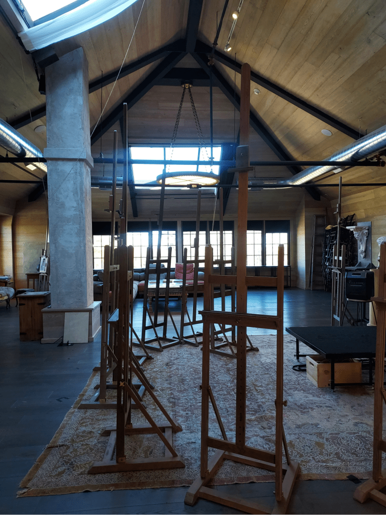 While the exterior of the building looks like it’s someone’s house, the inside is filled with two floors of beautiful paintings, sculptures and glass work, all shining brightly through huge windows – with a cozy third floor dedicated to hosting classes and workshops.