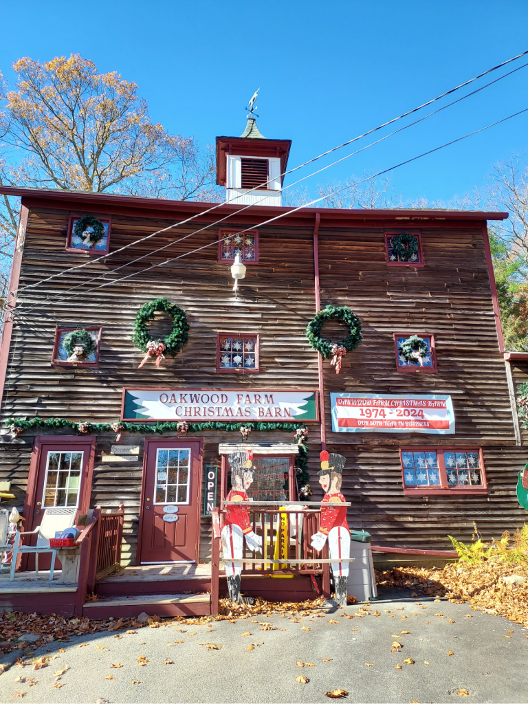 On Sunday, I was feeling a little festive – despite my Fall décor staying put for the next couple of weeks – and I ventured out to Spencer, Massachusetts to browse the Oakwood Farm Christmas Barn, who celebrated their 50th Anniversary as of last year. The two-floor barn is covered from floor to ceiling with Christmas decorations, wreaths, collectibles, etc. in each and every room – including a nook dedicated to other holidays, too – like Halloween, Easter and St. Patrick’s Day.