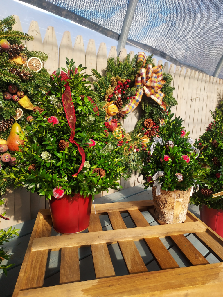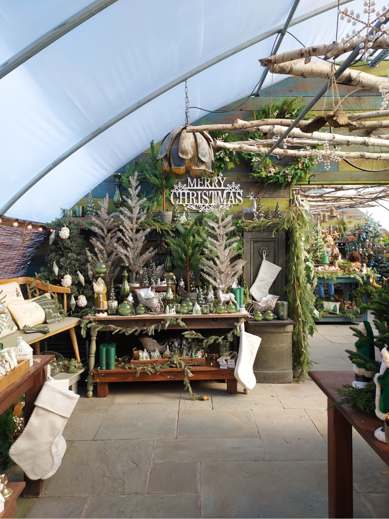 This past weekend, I found myself running some errands and making plans in and around Rhode Island in preparation for Thanksgiving and the upcoming Christmas season. One of those errands was stopping by one of the prettiest and most expansive garden centers/farm stands in South Kingstown – The Farmer’s Daughter – who just converted their greenhouses into a series of Christmas shopping displays filled with ornaments, trees, stockings, light fixtures and so much more for sale!