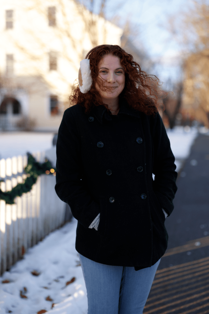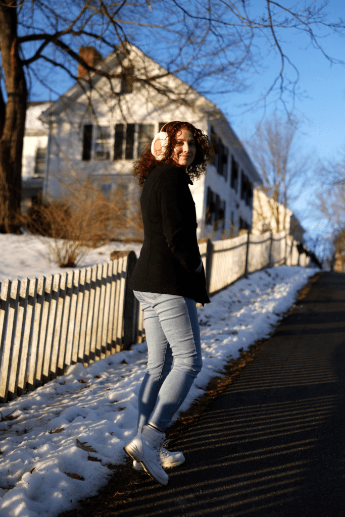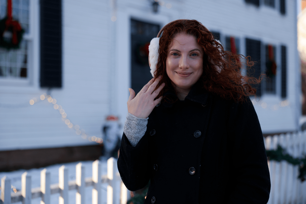 Regardless, I’ve tried to make it fun and as chic as I can, finally breaking out a black wool peacoat I’ve owned for a number of years (but, being wool, seems to attract every piece of fuzz and lint within a 40-mile radius at any given time!), heavier white boots that I’d actually bought specifically for my hiking excursions in Italy this past May – and am finally wearing again since they do great on snow and ice – and these fuzzy earmuffs I had shared a couple of weeks ago in my November “Favorite Things” round-up!