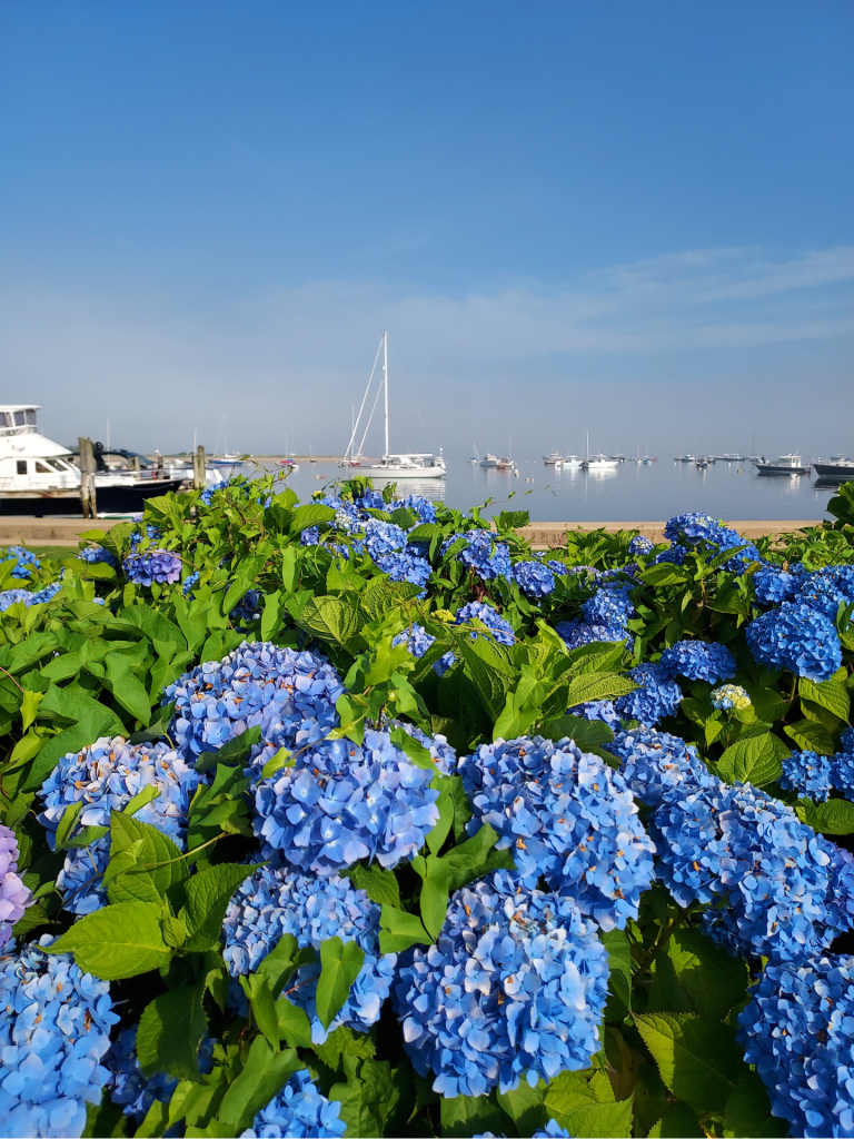 This photo wasn’t taken on Cape Cod, however, but at Watch Hill Beach in Rhode Island – near the famous Ocean House Hotel – where I had stopped one morning while out picking up coffee and pastries for myself and some of my friends since we’d had plans together in the area later on that day. I’d arrived early and found parking right by the water when I came across these blue hydrangeas that looked so perfect with the boats in the background.