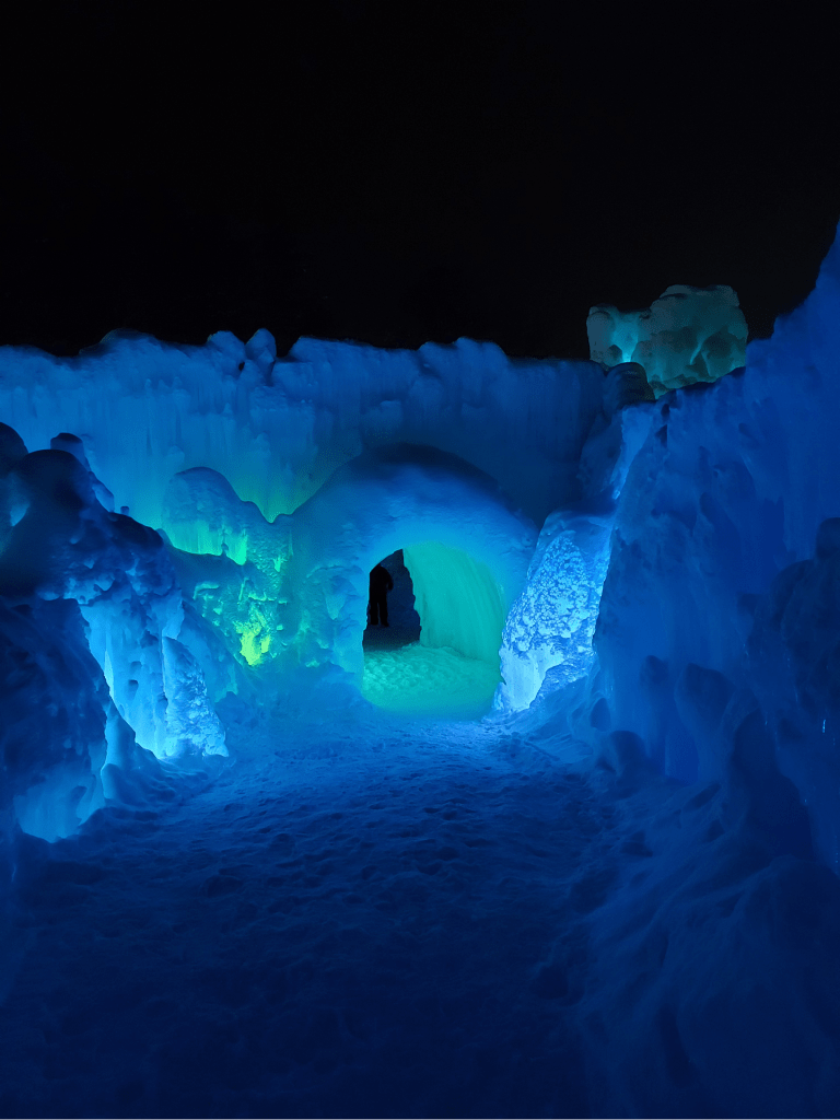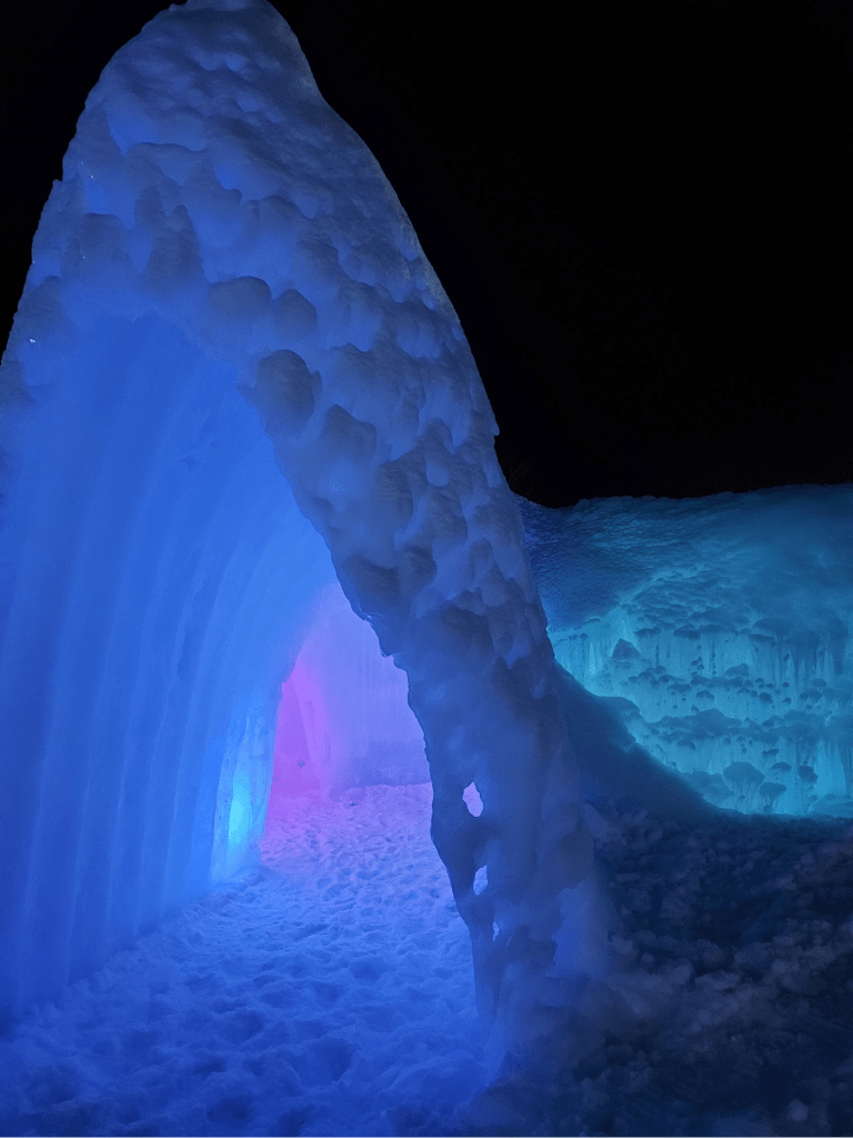 The castles – including explorable tunnels and slides that are all lit up with changing lights and soundtracked with relaxing music – are huge, and made entirely out of ice and snow. It was seriously impressive, and super fun – especially since the slides made you go from 0 to 40MPH in just seconds. I had a blast on those!