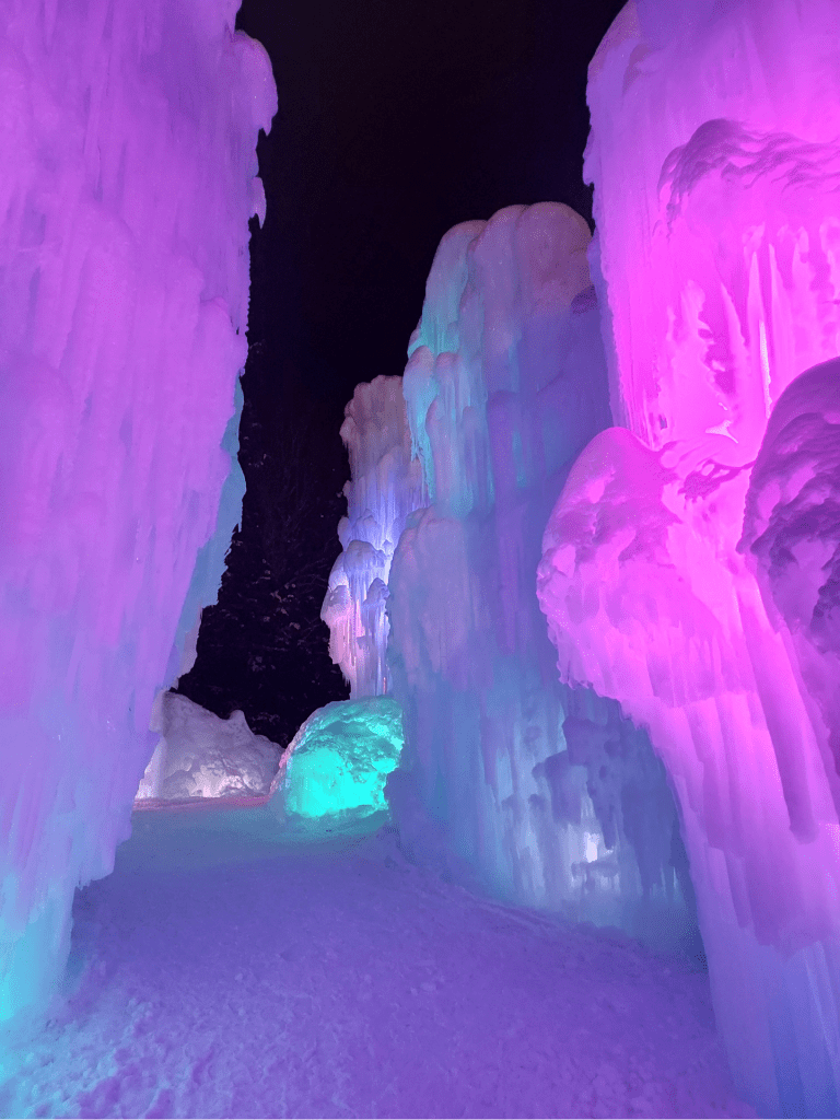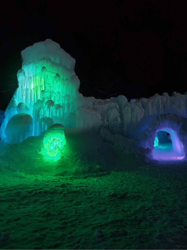 In regard to celebrations that have already taken place, my extended birthday weekend began this past Wednesday night when Dan, as an early present, took me on the long drive up to North Woodstock, New Hampshire to see the famous (and seasonal) ice castle displays.