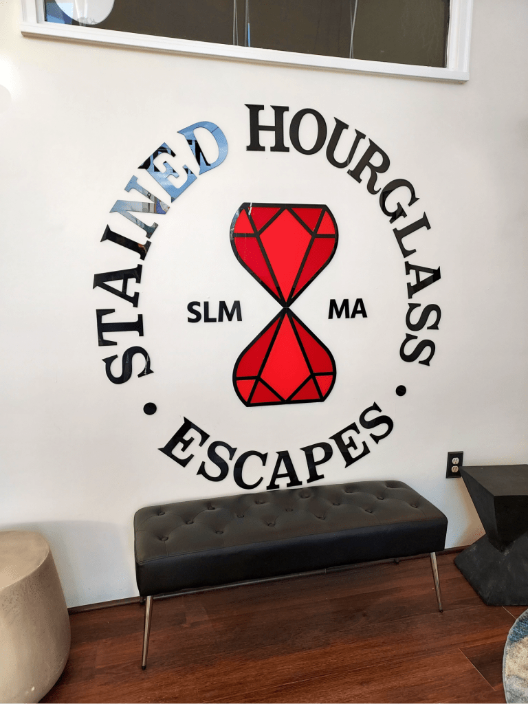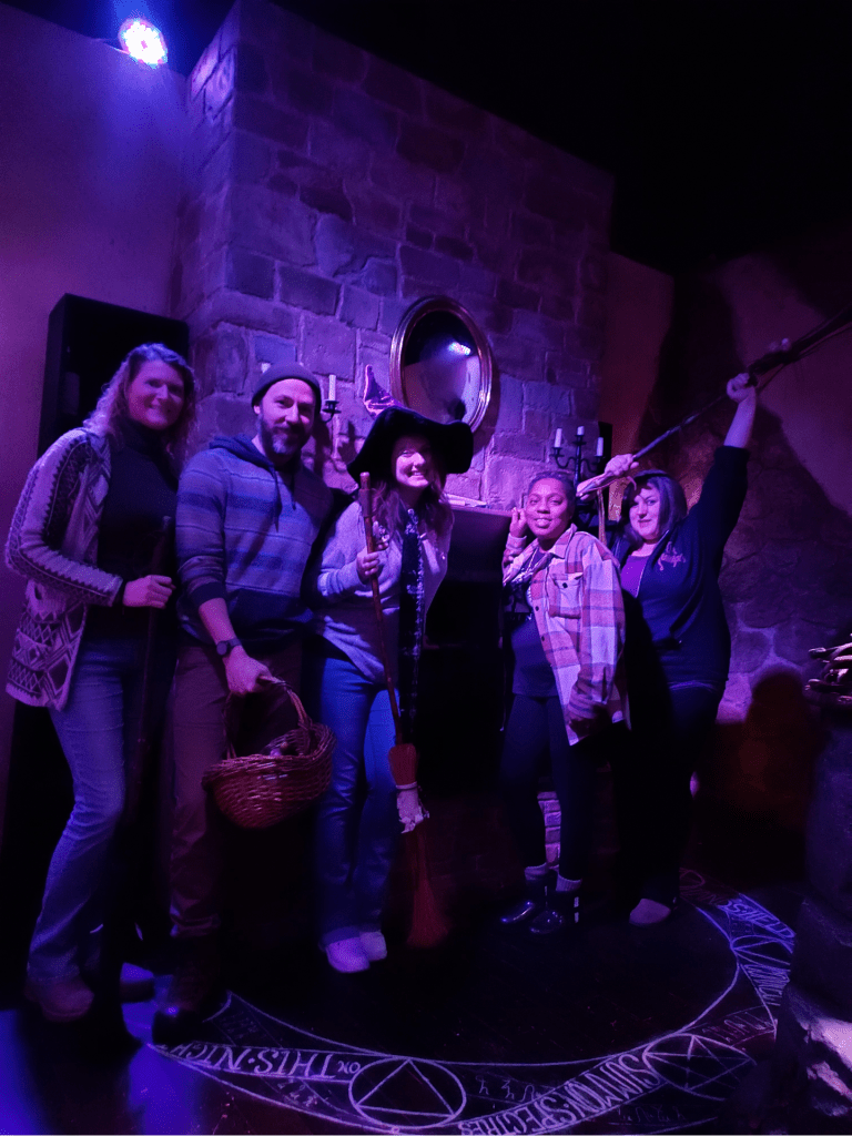 Our next stop was a haunted/witch-themed escape room via Stained Hourglass Escapes. Right after we showed up, I received yet another surprise – Sean was there! He’d come down for the afternoon to join us and celebrate with me! I was thrilled to have him there, not just because he’s one of my best friends and I adore him – but because he’s really good at solving puzzles and I knew we’d need all the help we could get.