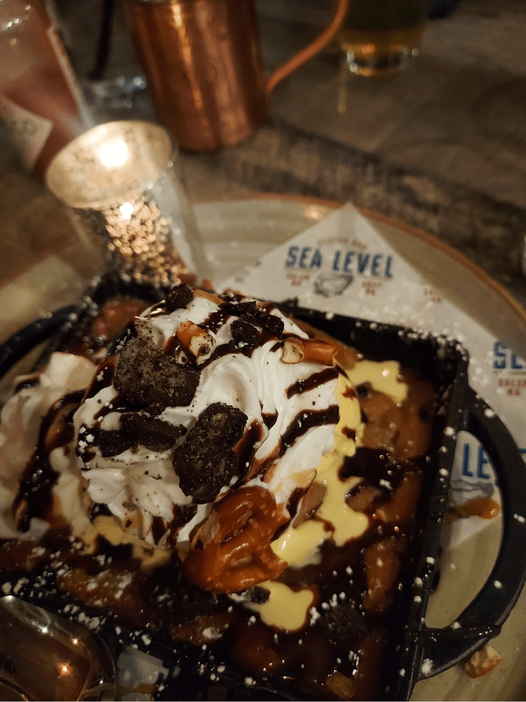 Our dinner plans were at Sea Level since everyone knows how much I love oysters and fish tacos – and boy, did we have a lot of them! We also all split a cookie skillet dessert loaded with chocolate and pretzels – which might be my favorite form of birthday cake ever.