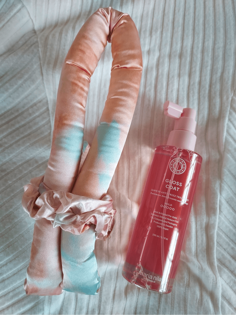 This season, I hopped on board the heatless curlers craze – not because I need any more curl in my hair – but because the satin rod and scrunchie combination has worked wonders in keeping my hair frizz-free each morning when I unwrap my hair from around it. My curls are soft, bouncy, and ready for styling!