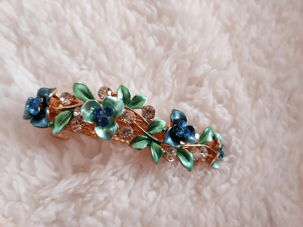 This sparkly, floral hair clip was another gift from my boyfriend this month, and I’ve been wearing it non-stop at work, or when I’m out with friends for any occasion. It’s so lovely, and the colors are really beautiful for this time of year – and will continue to be when Spring eventually arrives and I start wearing more blues and greens in my wardrobe to commemorate the season!