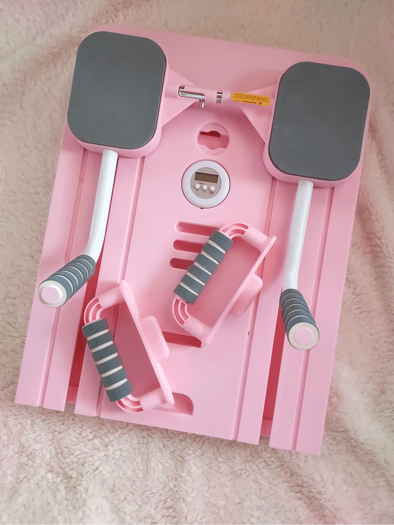 This easy to assemble and easy to store fold-up set comes with a number of tools and add-ons that can be hooked/clipped onto the board to get a full-body workout. I can work my core, my arms, my legs – everything – in just 30 minutes, which has made this the perfect tool to use in the mornings, during my lunch break, or at the end of the day when I want to get a good stretch in.