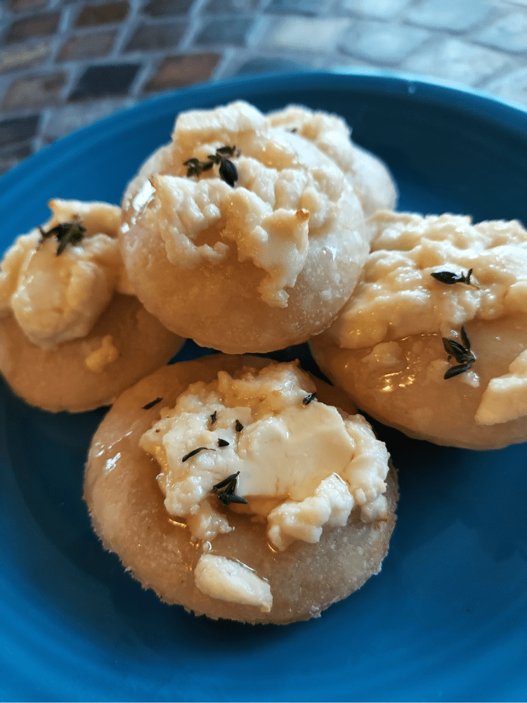 Of course, we have to stay fed and hydrated, so I’ve been whipping up an array of snacks to get us through the torrential downpours and occasional snow showers – including this quick and easy appetizer that beautifully combines the savory taste of goat cheese with sweet honey – a perfect duality for those who love a little bit of both the way I do!