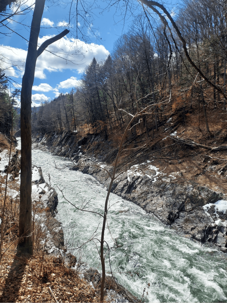 One of our most recent adventures together involved another day trip up to Vermont, this time to Quechee Gorge for a mid-afternoon hike down to the water on one of the sunnier days we were allowed by Mother Nature, followed by visiting nearby Woodstock for some shopping, some ice cream (since it was Maple Weekend – and I may or may not have had a maple waffle sundae that changed my life) and a quick sit by the fire at the historic Woodstock Inn before it was time to make our way back home.