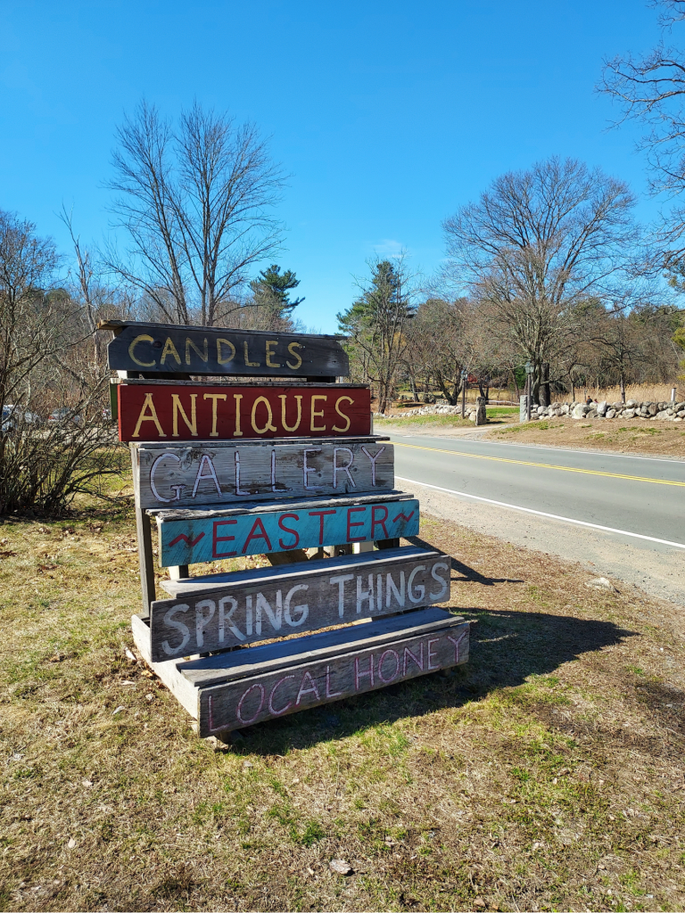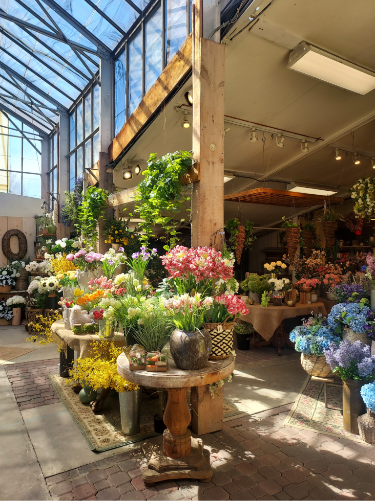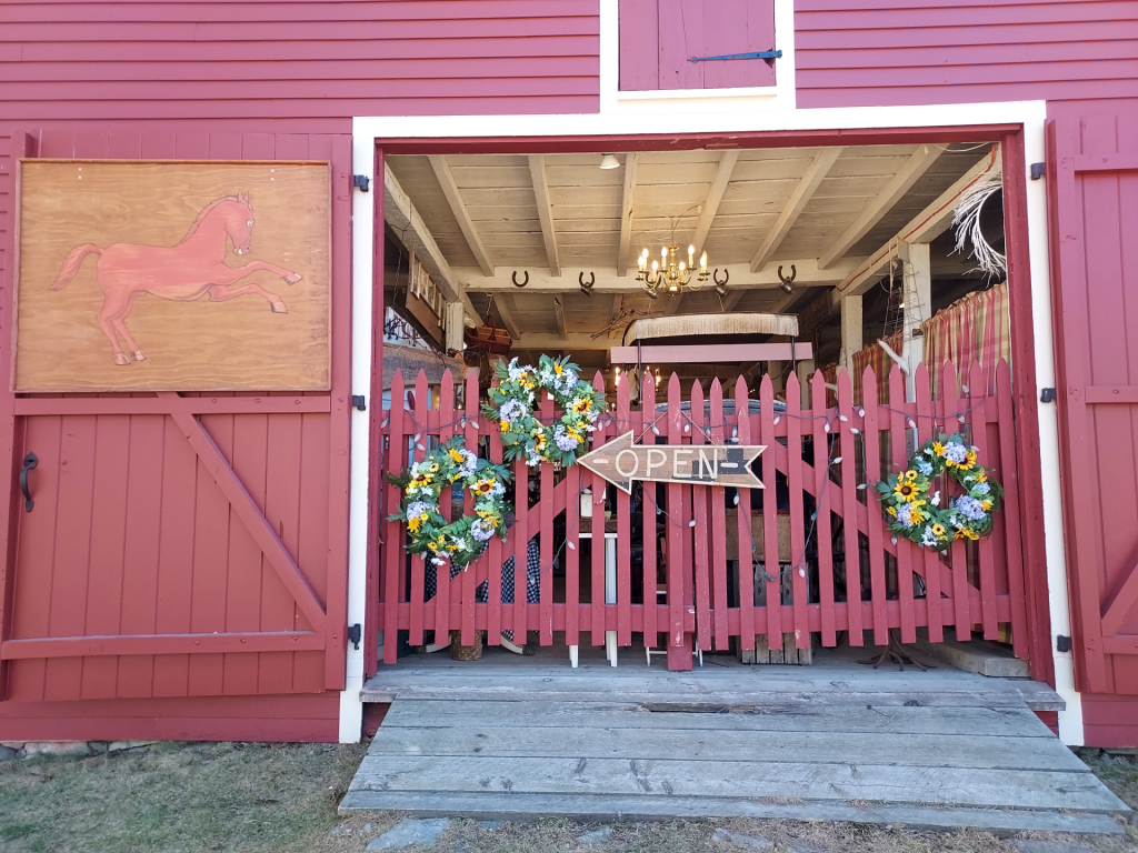 Afterwards, we headed to nearby Sudbury, Massachusetts to grab lunch at the historic Wayside Inn. I haven’t been by the area in what felt like ages, but it’s just as beautiful as ever now that the trees and flowers are starting to bloom around the grounds. We’d made sure to stop and check out the antique barn shop directly across the street from the Inn, which had a number of beautiful wreathes and floral arrangements for sale.