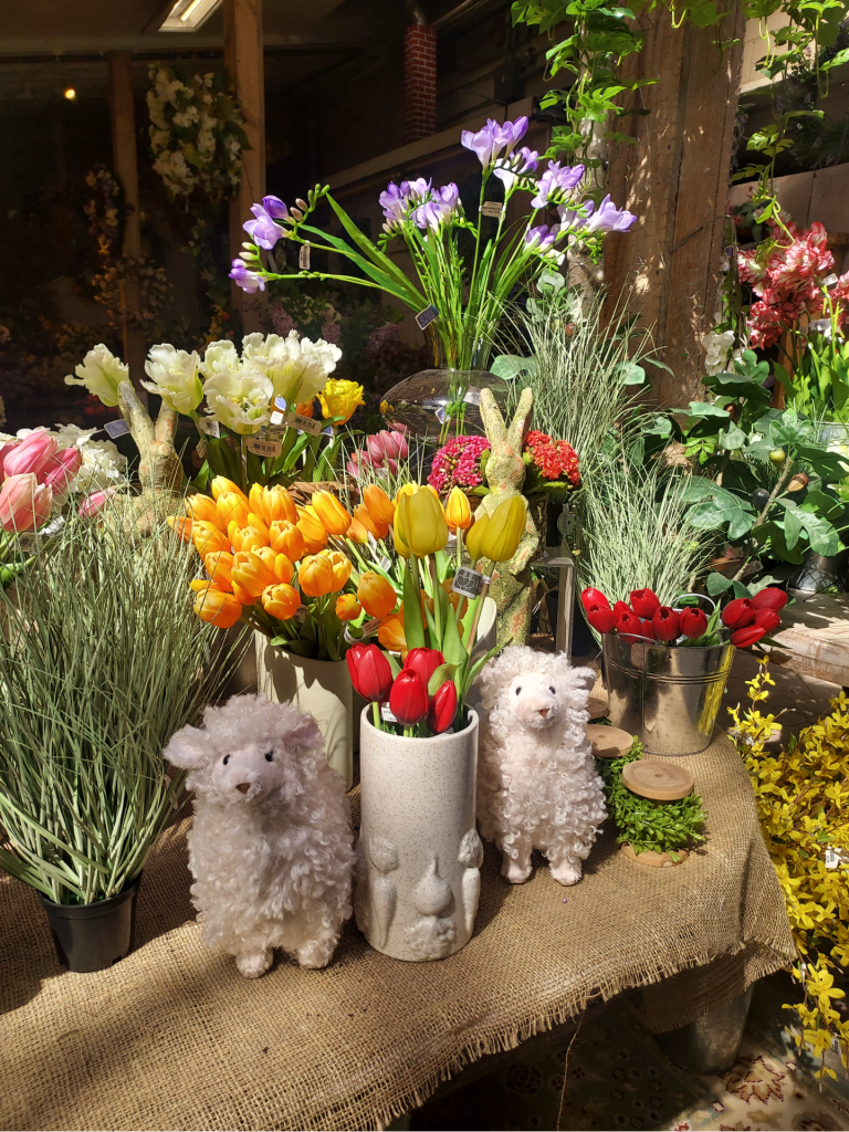 I was so happy to see Hydrangeas in bloom (one of my favorites!) and so much cute Easter and Spring dΓ©cor available – and I ultimately bought myself a tropical palm that, amazingly, is still thriving in the not-all-that-tropical-climate of my apartment, as well as a couple of little trinkets just for fun.