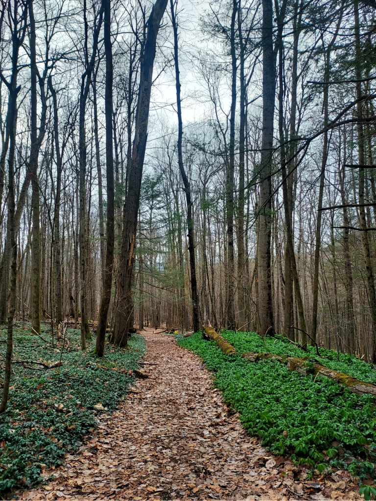 The trail itself is lovely, and we came across deer and blooming flowers as we strolled. It wasn’t until I saw a tick crawling on my sneaker that we decided to cut the day a little short. Be careful out there, everyone! It’s the season of nasty bugs resurfacing!