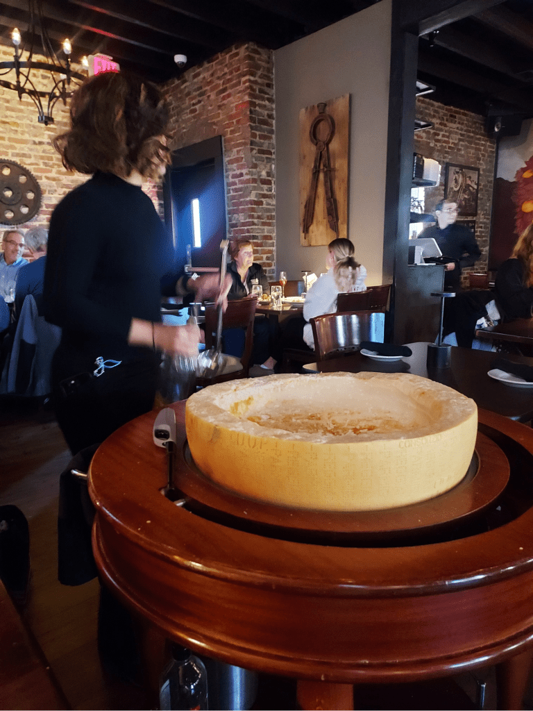 I insisted we have Alfredo made tableside inside a gigantic cheese wheel since he had never seen it made before – and it was worth it for his reaction alone (but it tasted great, too!)