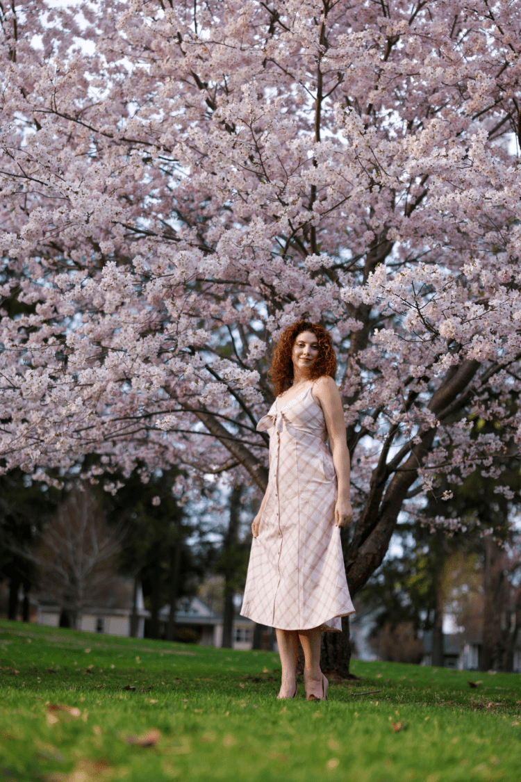 This dress is so comfortable and so lightweight (but not see through!) and can be dressed up or down quite easily. I wore my tan heels this time around, which admittedly made a stop in the park a tad more difficult because of the grass – but a simple pair of white sneakers or sandals would look great, too!